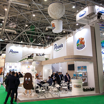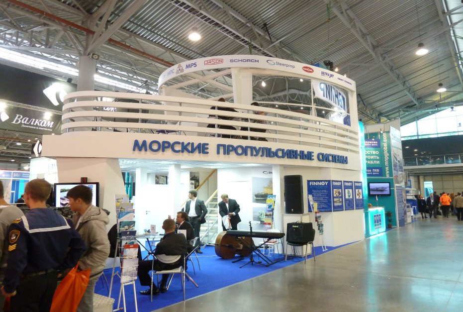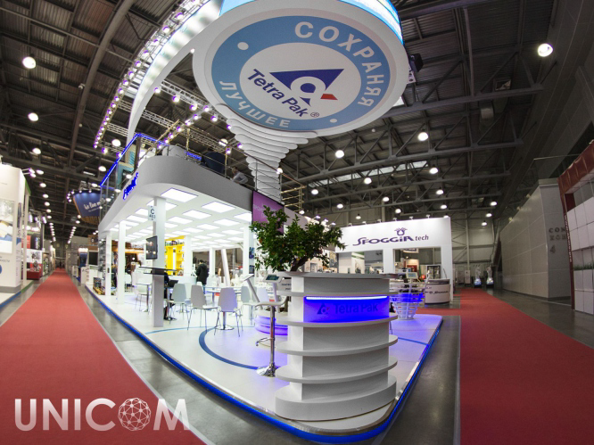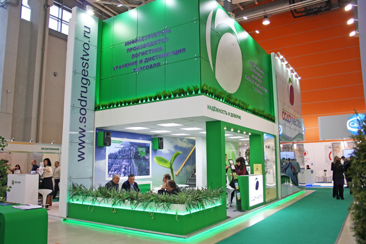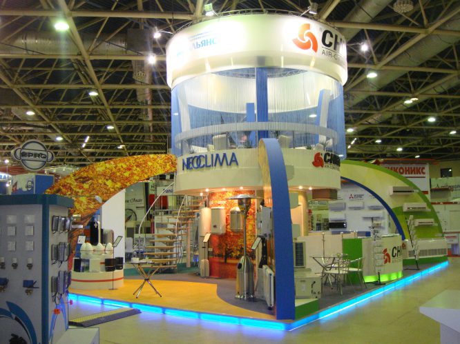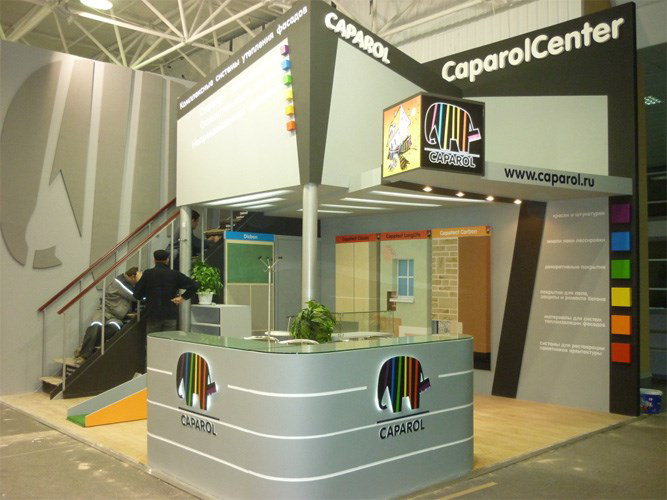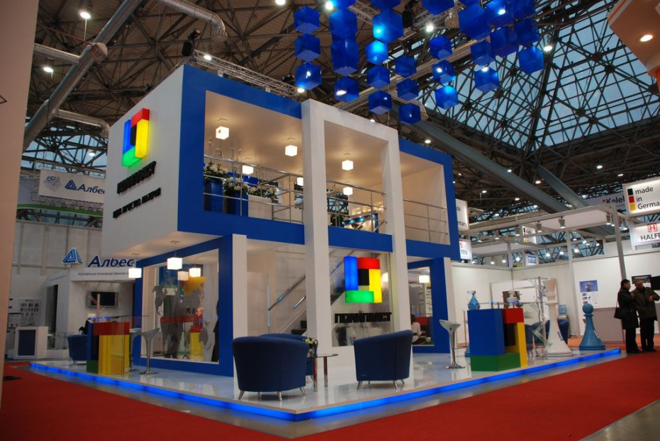 Дизайнер не ограничивает себя в фантазиях при разработке двухэтажного стенда.